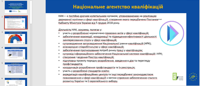 Svitlana Makarevych informed the audience about the tasks and program of the Project. The implementation of the Project's objectives will allow national providers of vocational education, stakeholders to update their practices and training programs, through adapted, innovative and technical solutions in the field in buildings with nearly zero energy consumption. This will contribute to a gradual reduction in dependence on fossil fuel imports.