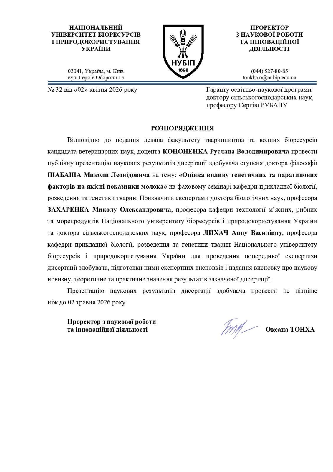 1. РУБАН Сергій Юрійович, в. о. завідувача кафедри прикладної біології, розведення та генетики тварин Національного університету біоресурсів і природокористування України, доктор сільськогосподарських наук, професор, член-кореспондент НААН, гарант освітньо-наукової програми, науковий керівник.