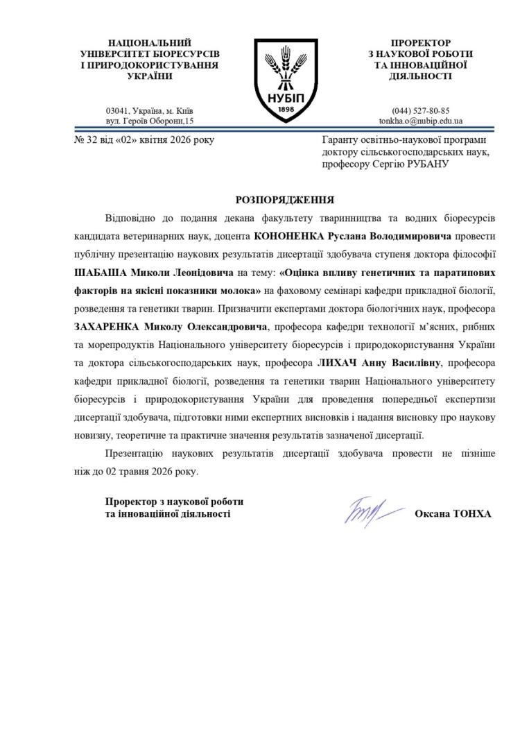 Тема дисертації: «Оцінка впливу генетичних та паратипових факторів на якісні показники молока».