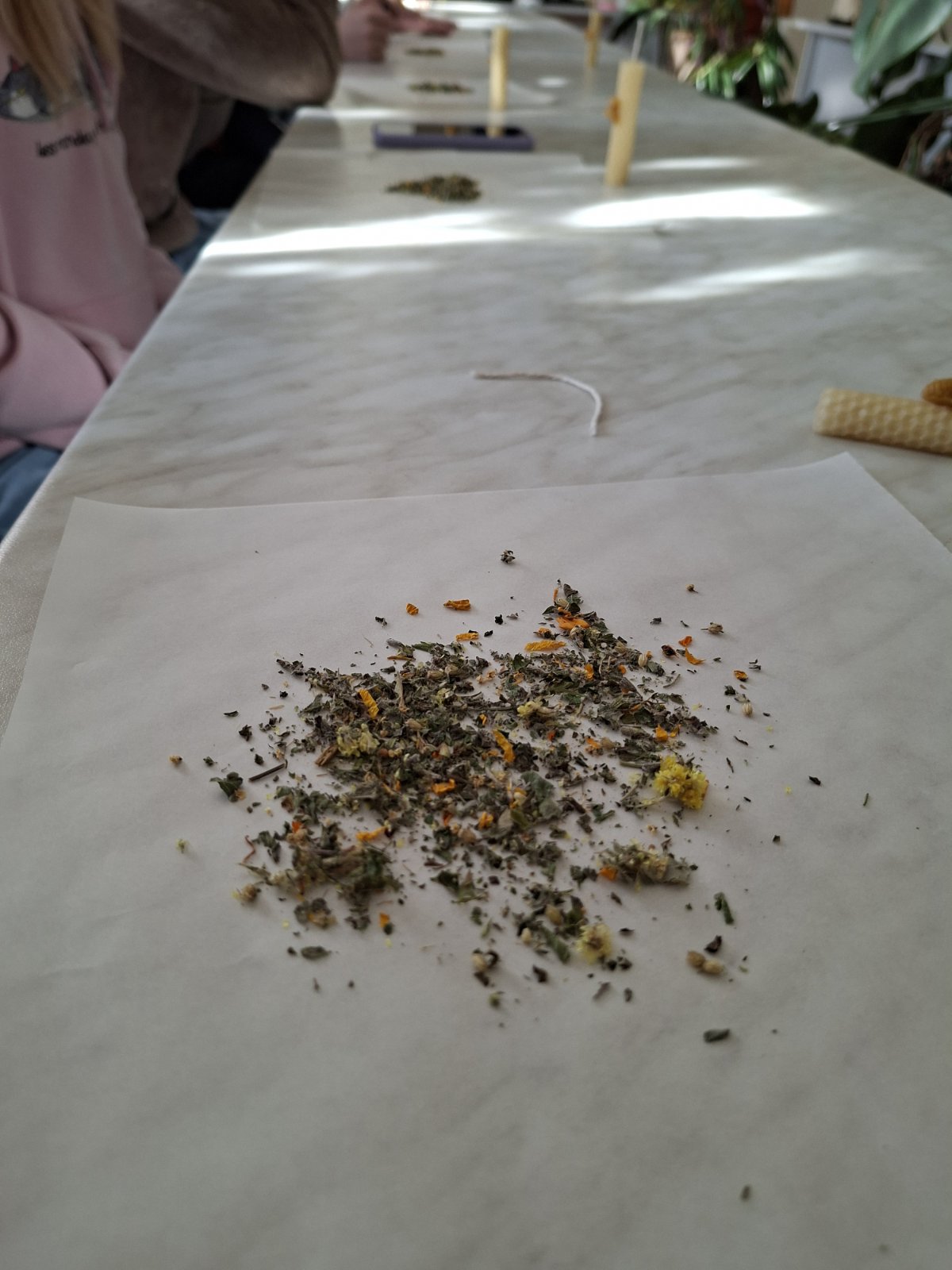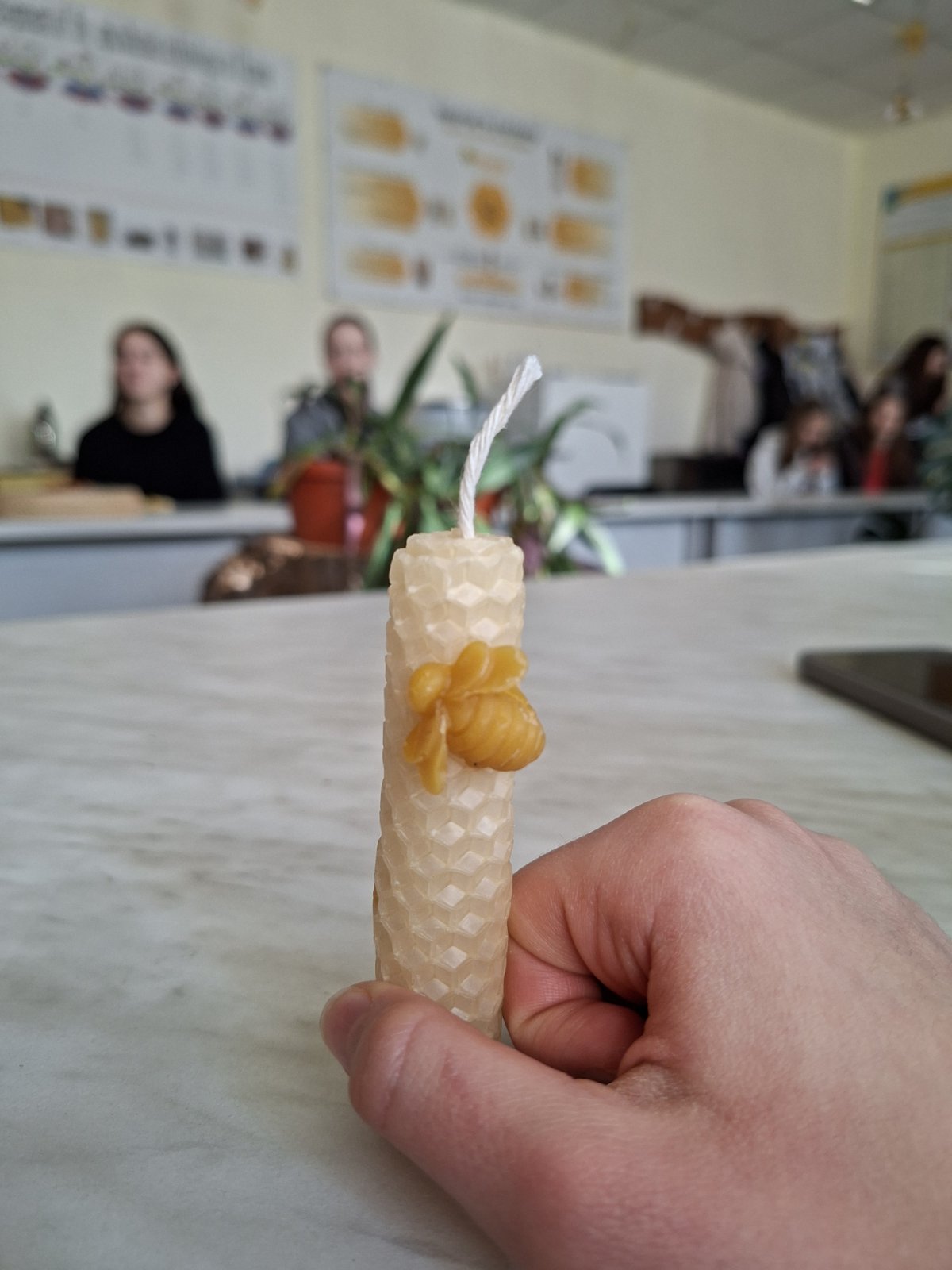Під керівництвом Анастасії Вікторівни учні опанували різні технології: створення свічок із вощини та відливку з чистого воску. Кожен крок – від підготовки гніту до вкатування трав – був сповнений творчості.