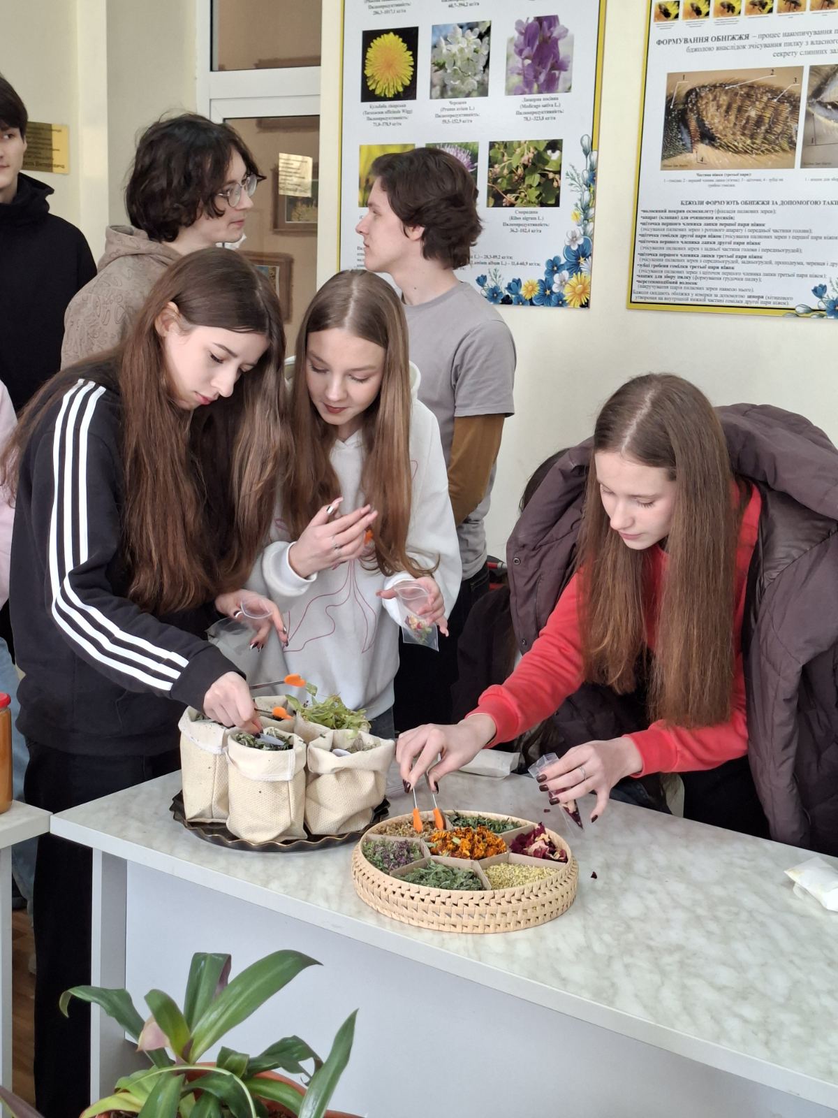 Після творчої роботи над свічками на дітей чекало нове відкриття ‒ створення чайних купажів. Кожен учень власноруч приготував особливий збір, аби забрати із собою додому часточку «букета Голосієва» та найтепліші емоції від відвідування кафедри.