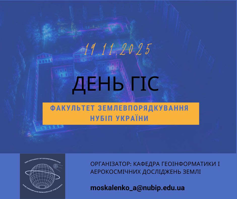 Кафедра геоінформатики і аерокосмічних досліджень Землі до Дня ГІС організовує ВСЕУКРАЇНСЬКИЙ НАУКОВО-ПРАКТИЧНИЙ СЕМІНАР "Від геоданих до рішень: як ГІС трансформує підхід до управління земельними та природними ресурсами"
