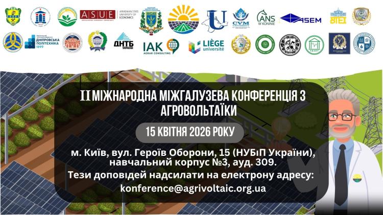 Запрошуємо вас взяти участь у II Міжнародній міжгалузевій конференції «Стратегія розвитку агровольтаїки: стан, виклики та кроки впровадження у відбудові України», яка відбудеться 15 квітня 2026 року.