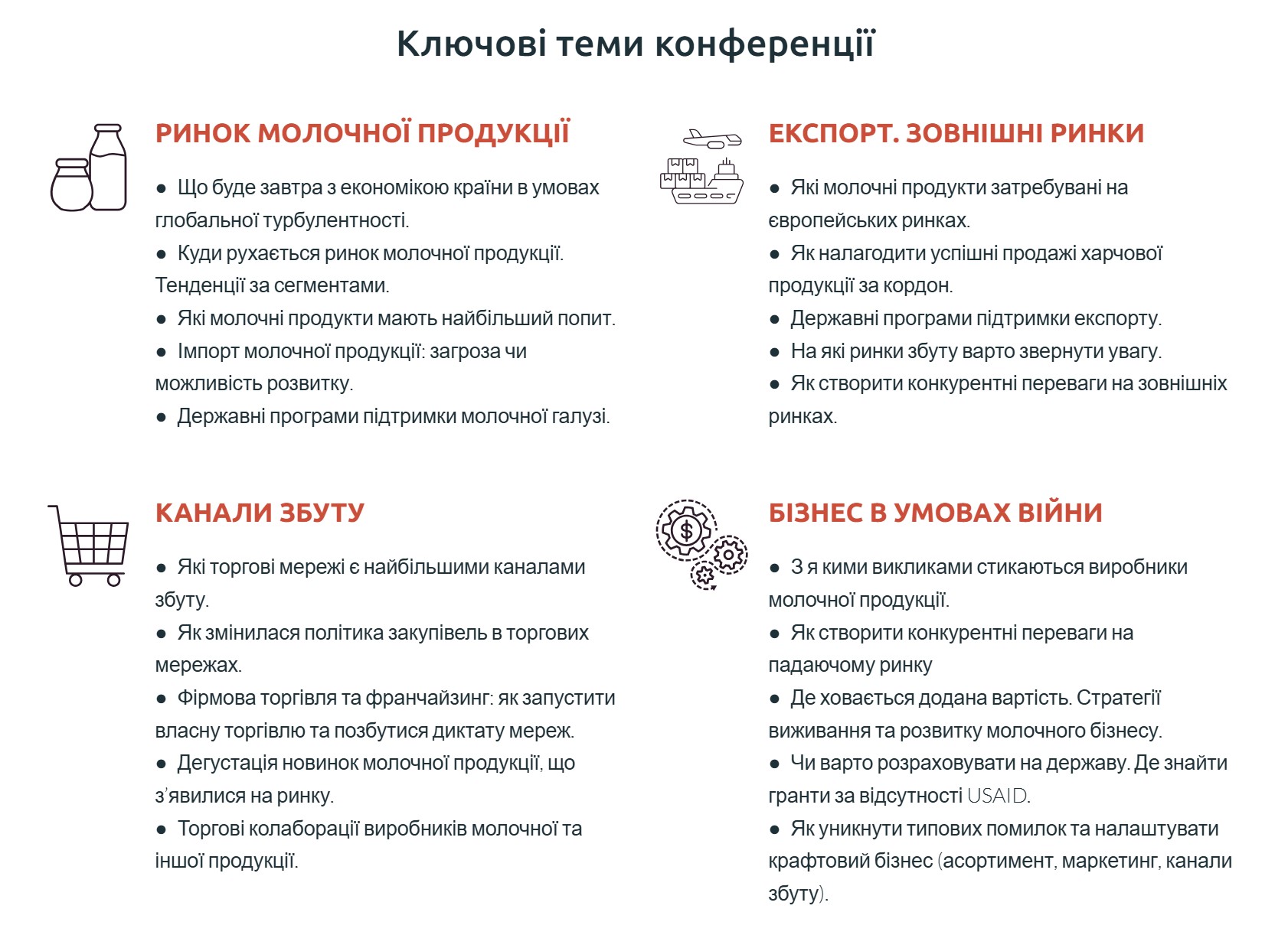 Конференція MilkyForum - це новини галузі, ексклюзивна аналітика, прогнози ринку, обмін досвідом, інсайди компаній, запеклі дискусії, "мозкоштурми", стратегічні сесії, які, загалом, підштовхнуть учасників заходу до прийняття стратегічних рішень.