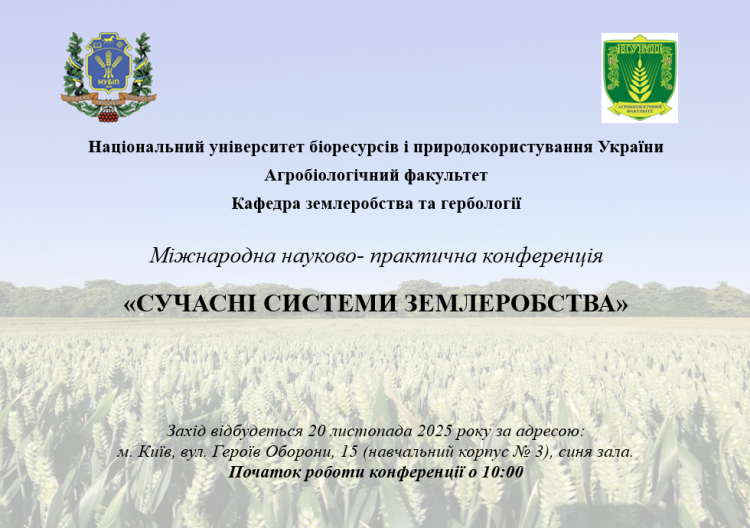 Міжнародна наукова конференція «СУЧАСНІ СИСТЕМИ ЗЕМЛЕРОБСТВА» Програма конференції 20-21 листопада 2025 року 09:00 - 17:00