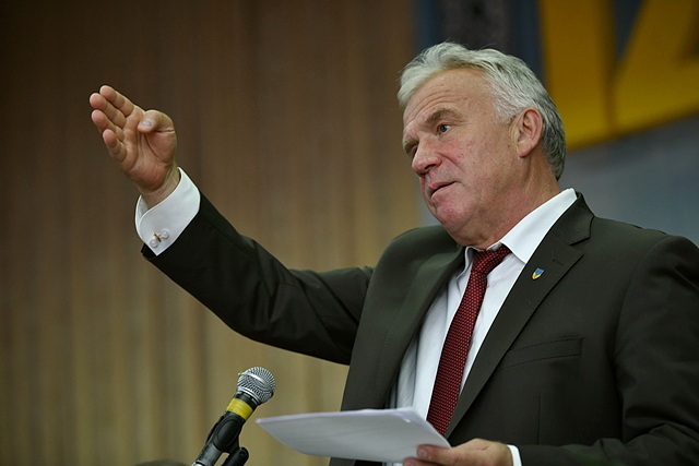Звертаючись до членів вченої ради ректор зазначив, що в університету є два шляхи – сидіти і чекати, коли до нас прийде підготовлений абітурієнт, чи вести активну профорієнтаційну маркетингову політику, працювати із бізнесом, йти до абітурієнта, розвивати дистанційну освіту, залучати до навчання дорослих, сповна використовувати свій потенціал. Говорив ректор і про вдосконалення системи контролю за якістю навчального процесу, створення спеціальних механізмів, які б унеможливили профанацію і лжеосвіту.
