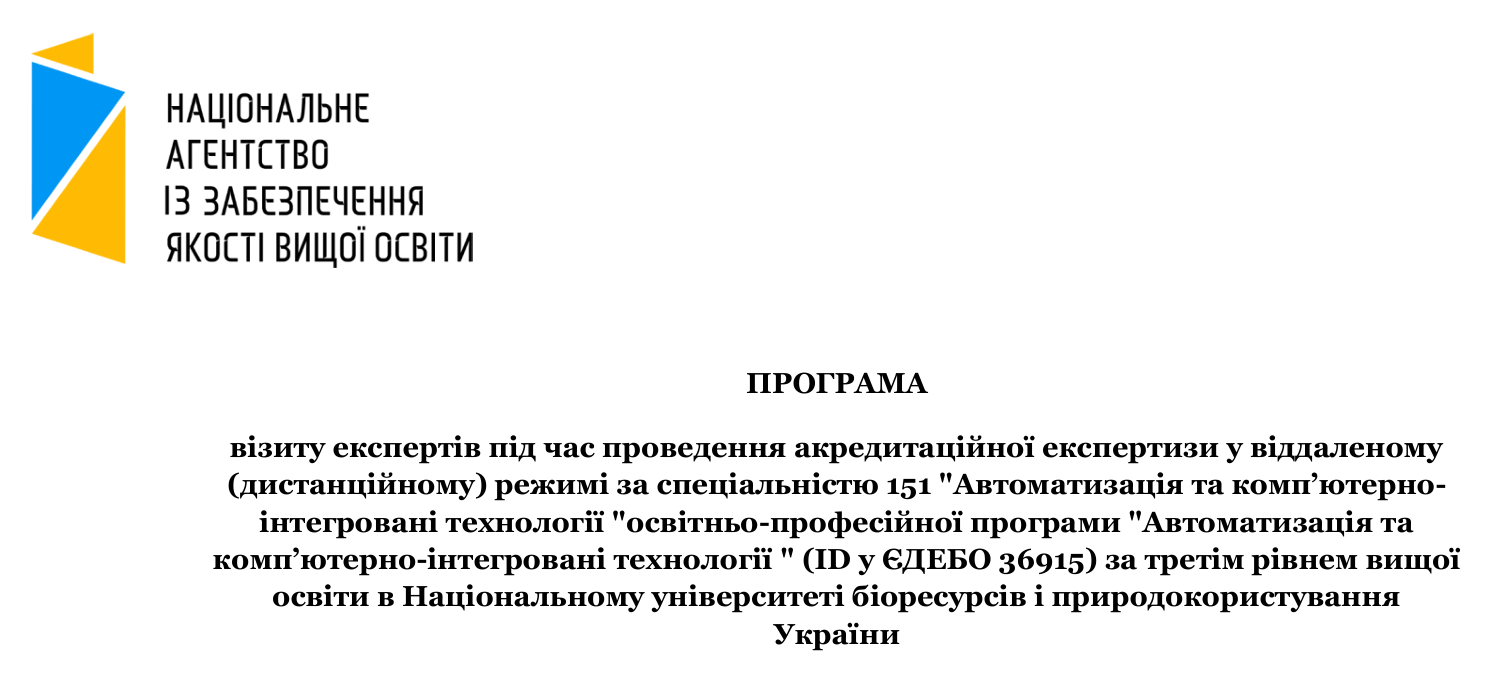 У межах акредитаційної експертизи освітньо-професійної програми третього (освітньо-наукового) рівня вищої освіти за спеціальністю 151 «Автоматизація та комп’ютерно-інтегровані технології» 09 лютого 2026 року з 17:10 до 17:40 відбудеться відкрита зустріч з експертами Національного агентства із забезпечення якості вищої освіти.