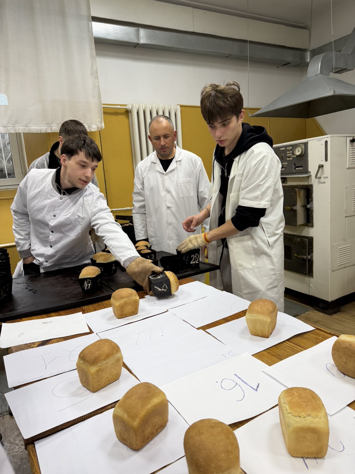 Завершальним етапом практики була дегустація та органолептична оцінка отриманих зразків хліба. Студенти оцінювали об’ємний вихід хліба, зовнішній вигляд, колір скоринки та м’якушки, пористість, еластичність, смак і аромат продукції. Це сприяє розвитку професійного мислення, вмінню поєднувати аналітичні дані лабораторних досліджень із практичними результатами переробки та формує навички експертної оцінки якості продуктів переробки.