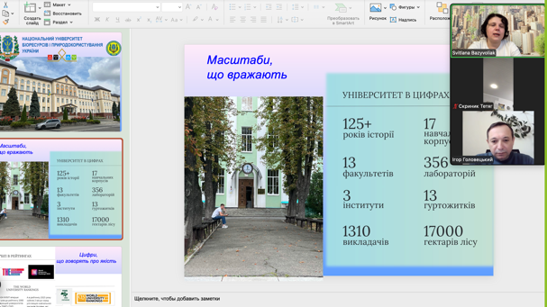 Під час онлайн-заходу викладачі детально ознайомили учнів зі структурою університету, його освітніми програмами та умовами вступу. Старшокласники дізналися про багаторічну історію закладу, яка гармонійно поєднує міцні академічні традиції з сучасними науковими дослідженнями та інноваційними підходами до навчання. Було акцентовано увагу на сучасній матеріально-технічній базі, навчально-дослідних лабораторіях, виробничих підрозділах і можливостях проходження практики як в Україні, так і за кордоном.