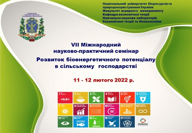 Питанням розвитку біоенергетики і був присвячений VІІ-й Міжнародний науково-практичний семінар «Розвиток біоенергетичного потенціалу в сільському господарстві», що відбувся 11-12 лютого 2022 р. у м. Київ за ініціативою кафедри економічної теорії та навчально-наукової лабораторії економічної теорії та біоекономіки НУБіП України.