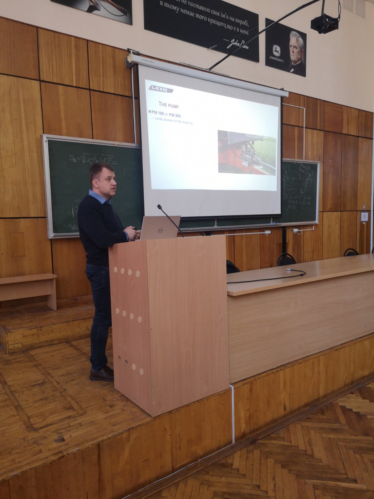 У ході лекції висвітлено основні типи обприскувачів польових культур, таких як причіпні фірми “Hardi” та “Kuhn”, а також самохідних обприскувачів компанії “Massey Ferguson“. Самохідні обприскувачі більш широко застосовують в великих фермерських господарствах, вони мають значно більшу продуктивність роботи. Лектор детально проаналізував відмінності будови, процесу роботи обприскувачів польових культур. Особливу увагу було приділено використанню компютерних технологій при налагодженні та в роботі обприскувачів.