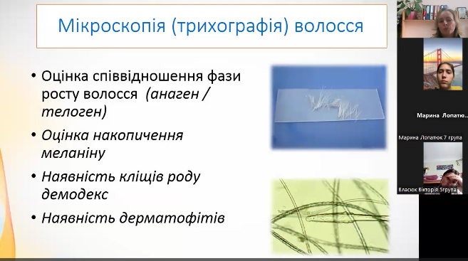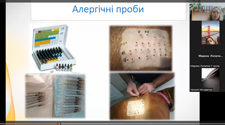 Згідно теми лекційного заняття лектор Тетяна Палюх висвітлила етапи дослідження пацієнта з хворобами шкіри, дослідження фізіологічних властивостей шкіри, проаналізувала їх зміни та зосередила увагу на патологічних змінах шкіри. Впродовж заняття студенти із зацікавленістю сприймали матеріал.