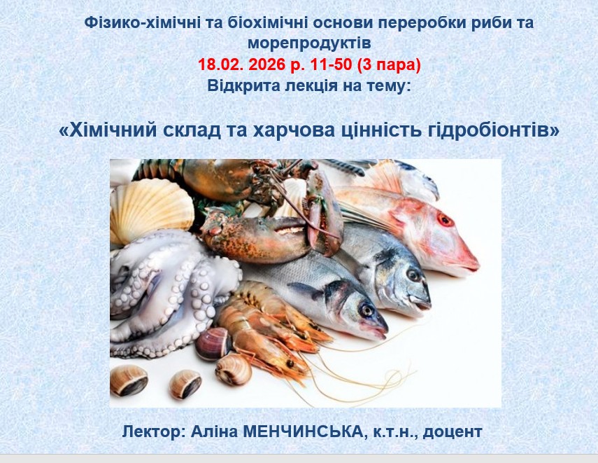 Відкрита лекція на тему: «Хімічний склад та харчова цінність гідробіонтів»