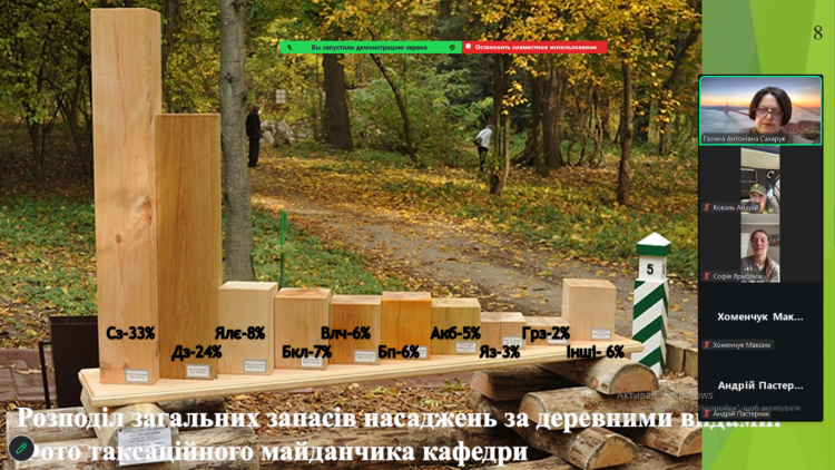 Теоретичний матеріал доповнювала якісна мультимедійна презентація з інфографікою, таблицями та фотографіями. Захід відвідали колеги з кафедри таксації лісу та лісового менеджменту, а також кафедри відтворення лісів та лісових меліорацій. Присутні викладачі високо оцінили фаховий рівень лекторки та її здатність тримати увагу аудиторії.