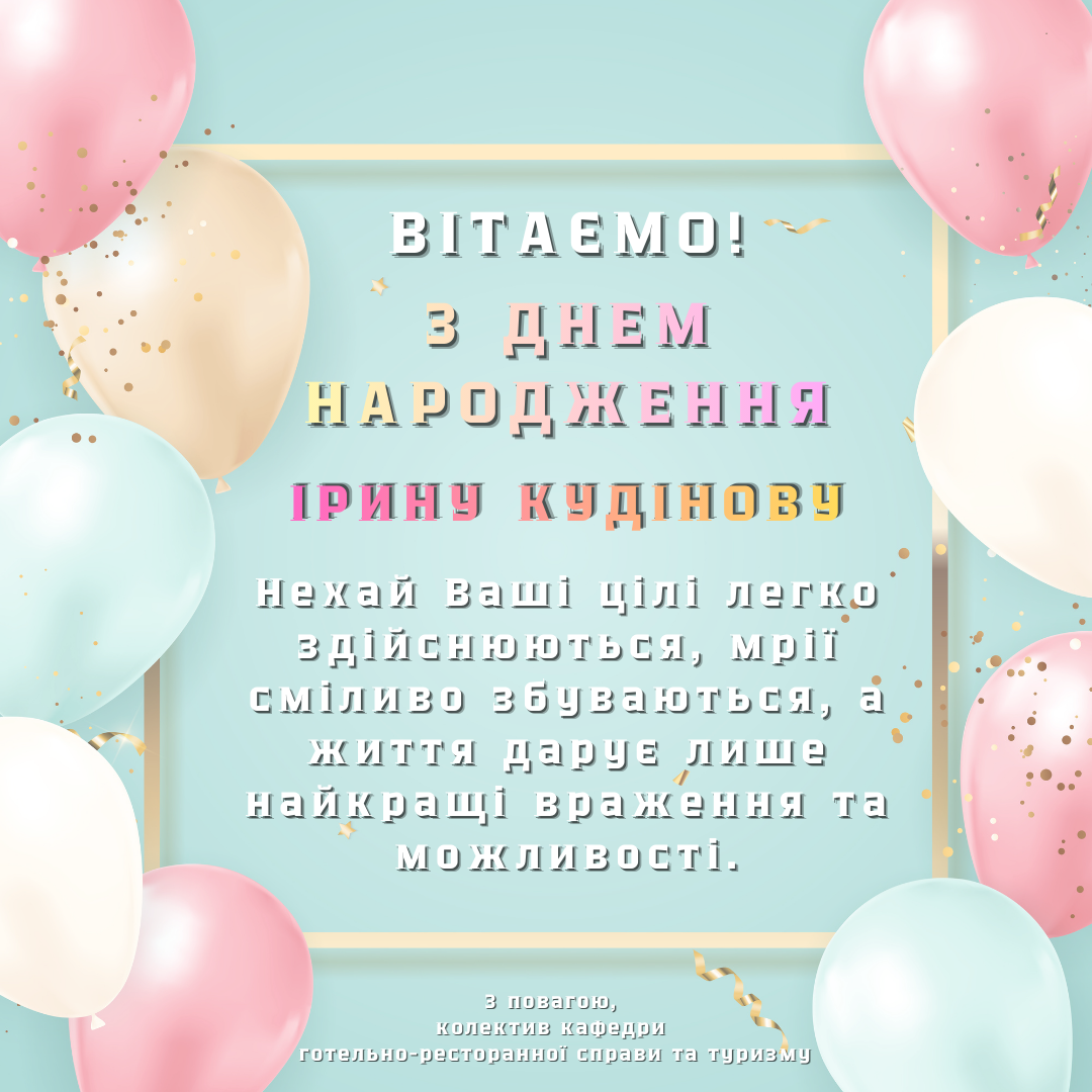 Вітаємо з Днем народження доцентку кафедри Ірину КУДІНОВУ!!