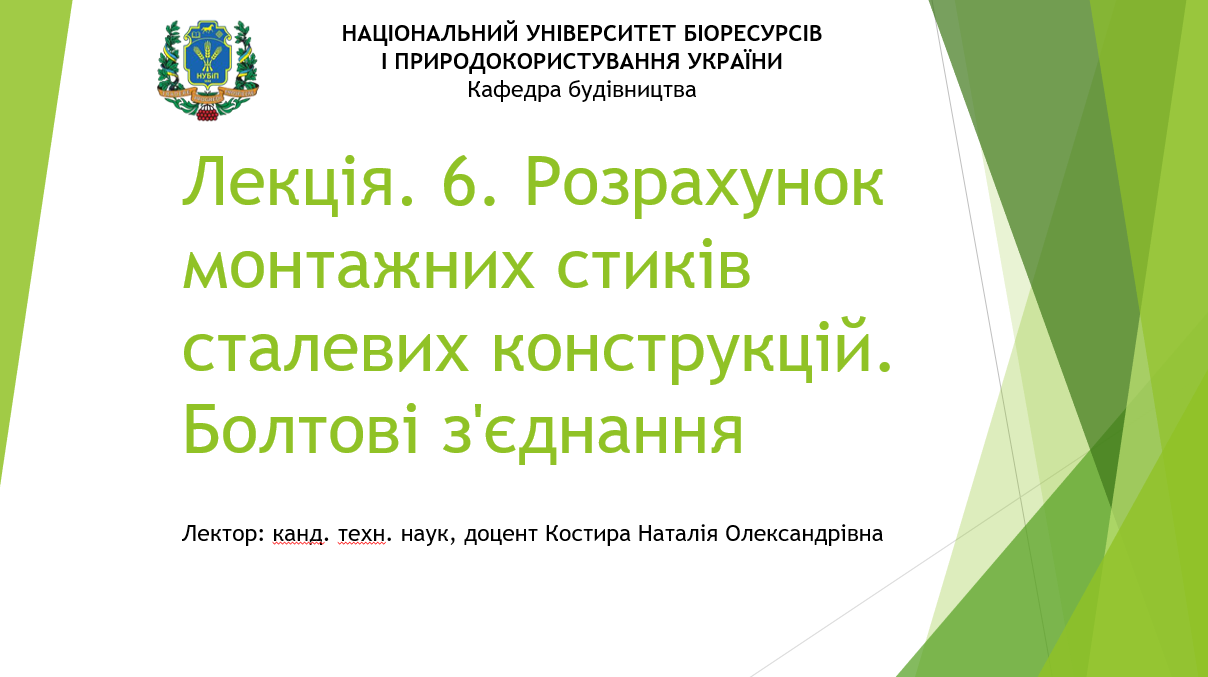 10 березня 2026 року о 13.30 на 4 парі у форматі онлайн відбудеться відкрита лекція доцента кафедри будівництва, кандидата технічних наук Костири Наталії Олександрівни на тему: «Розрахунок монтажних стиків сталевих конструкцій. Болтові конструкції» для студентів третого та другого курсу (скороченого терміну навчання), які навчаються за освітньо-професійною програмою «Будівництво та цивільна інженерія» ОС «Бакалавр» за основною освітньою компонентою «Металеві конструкції».