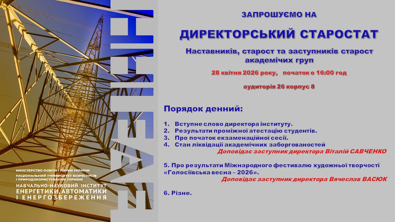 ЗАПРОШУЄМО НА ДИРЕКТОРСЬКИЙ СТАРОСТАТ