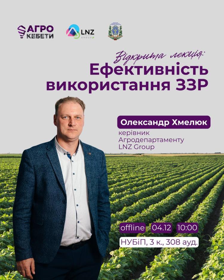 Спікер: Олександр Хмелюк, керівник Агродепартаменту LNZ Group, представник освітнього партнера проєкту «Агрокебети»