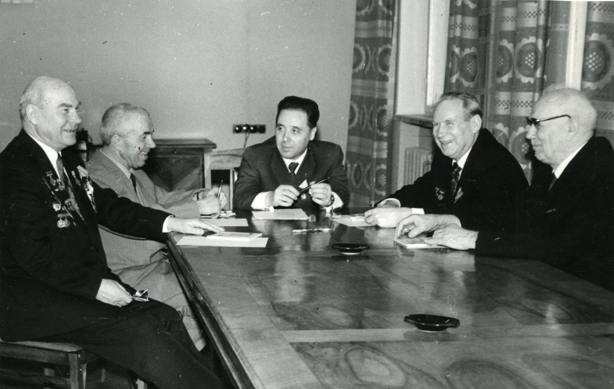 1976 рік, 17 лютого. В. Юрчишин вручає сувенір секретарю Тернопільського обкому Компартії України І. М. Яровому.
