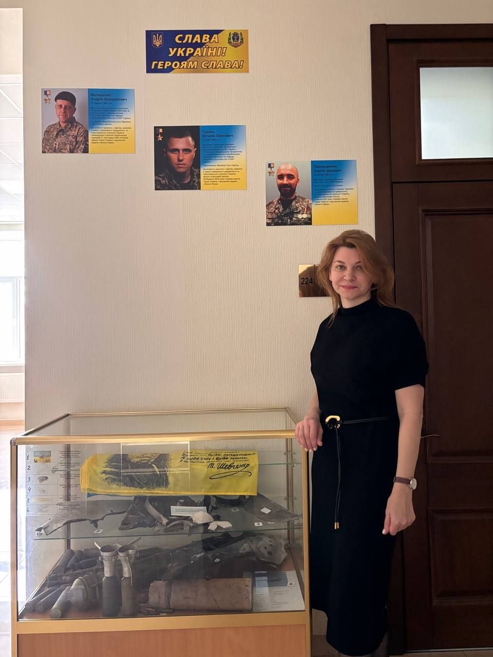 Директор музею історії НУБіП України ОКСАНА СИЛКА біля музейної локації "Слава Україні - Героям слава!"