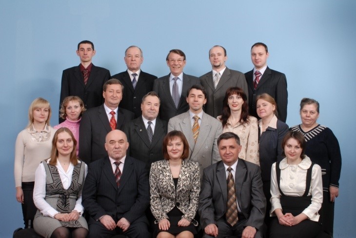 Sitting: Bykova O. E., Balayev A. D., Tonkha O. L., Zabaluyev V. O., Pikovskaya O. V.; standing: Melnyk T. M., Kudlay M., Berezhnyak M. F., Papka M. K., Kravchenko Yu. S., Karabach K. S., Voloshina N. V., Kovaleva R. N., Bogdanovich R. P., Plyakha M. G., Nesterov G. I., Achasov A. B., Kozak V. M.