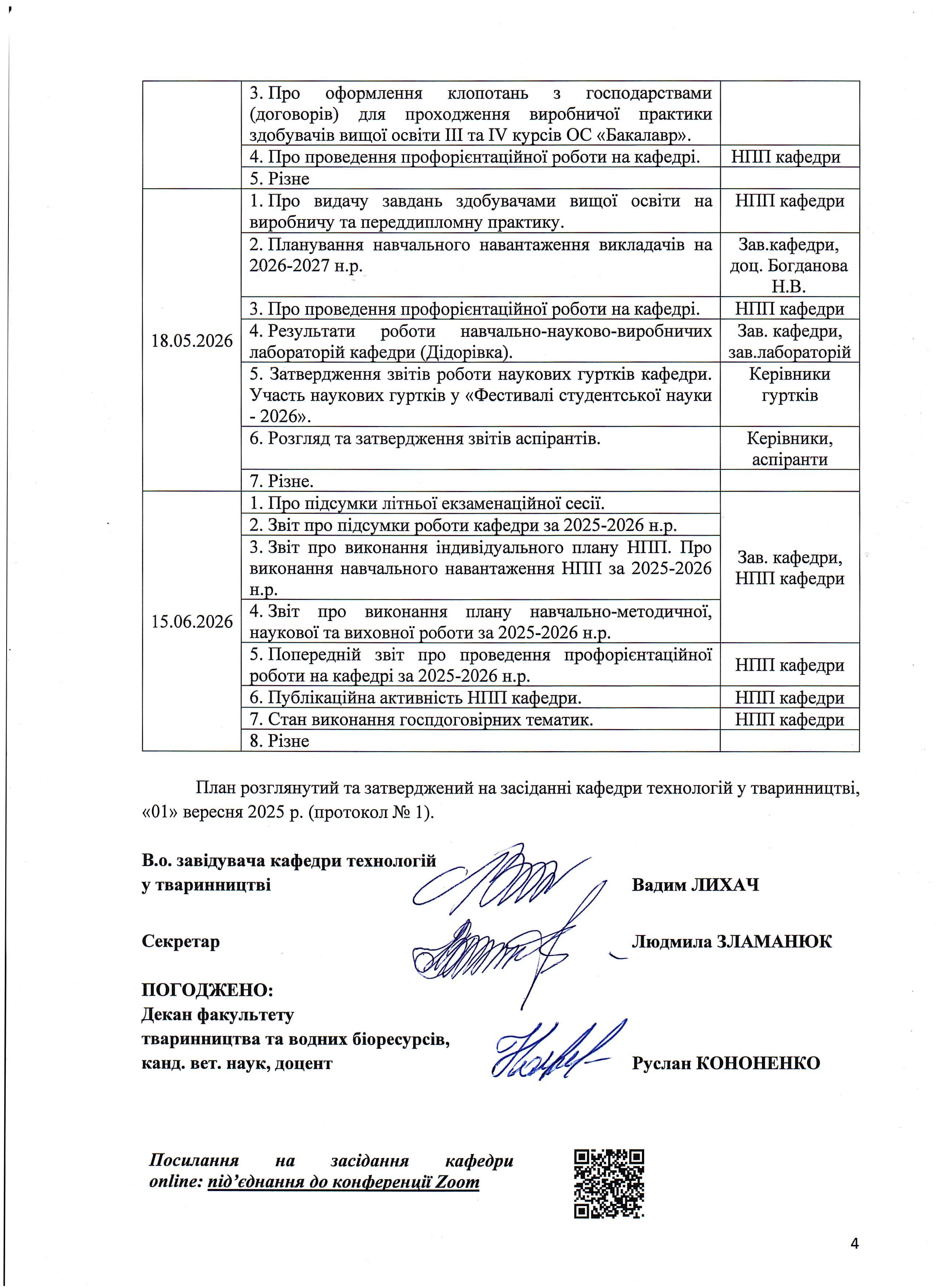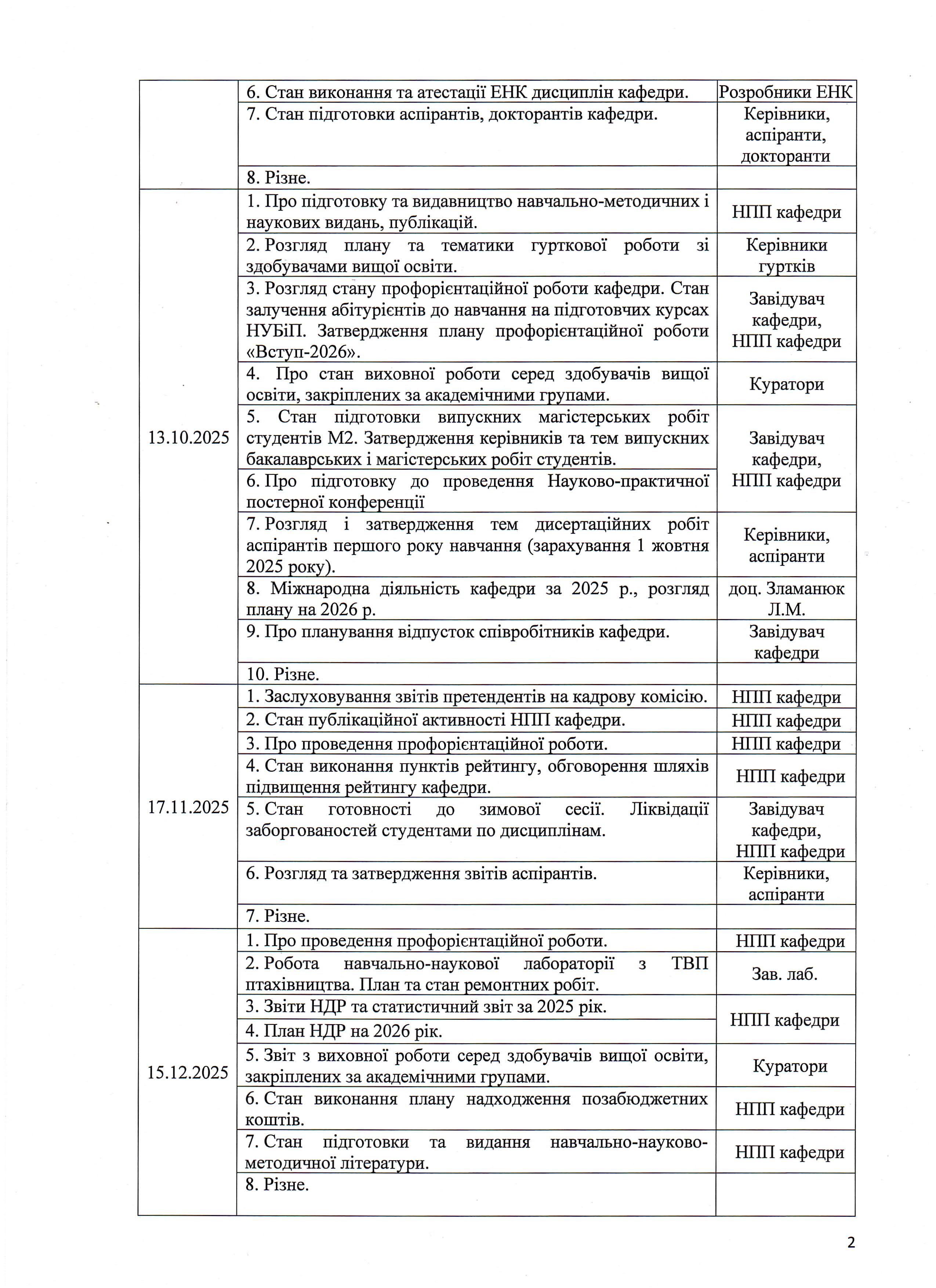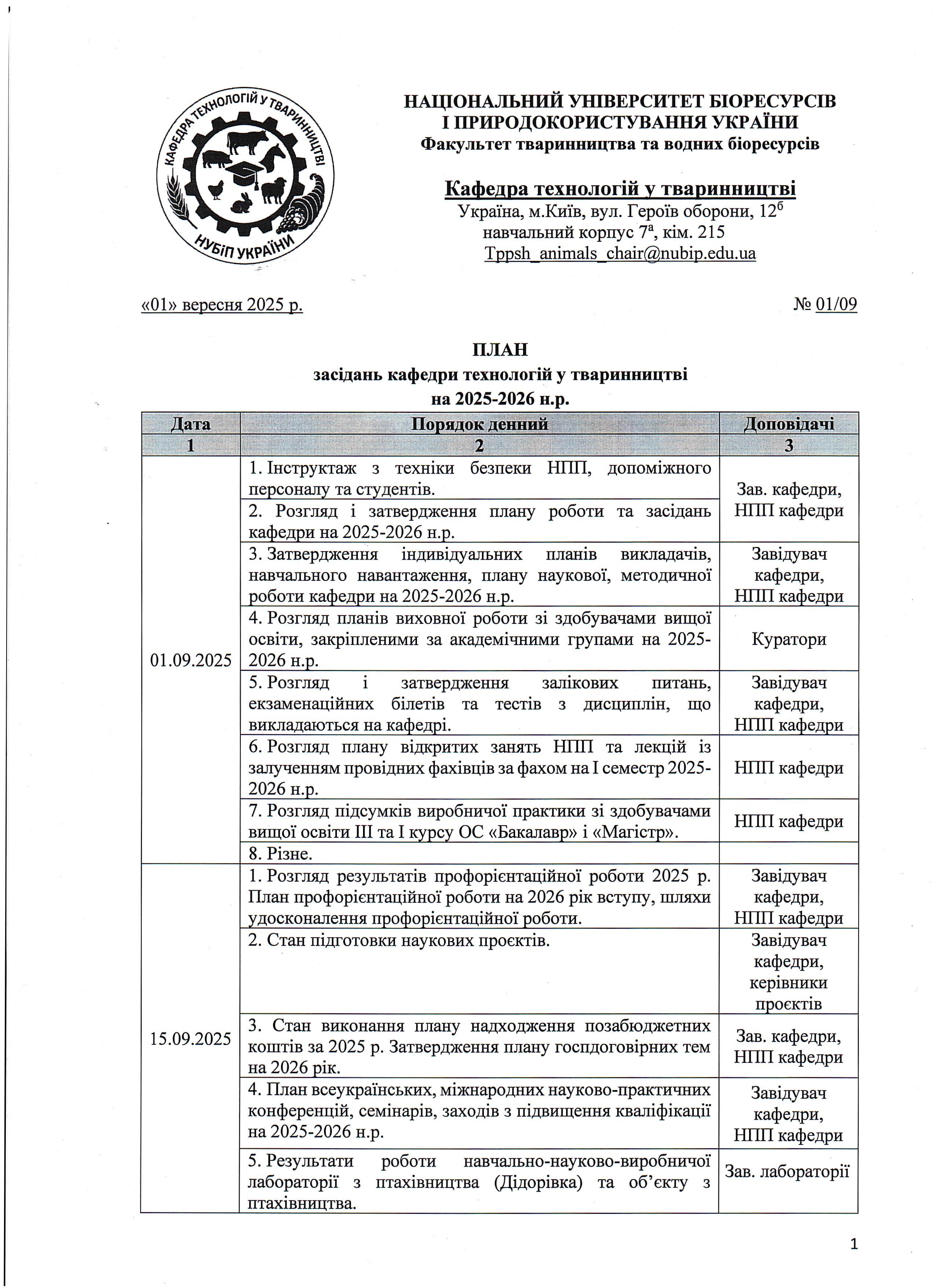 · забезпечення навчального процесу з підготовки бакалаврів, магістрів і науковців для роботи у скотарстві, конярстві, свинарстві, птахівництві, вівчарстві, козівництві, кролівництві, звірівництві та інших галузях сільського господарства;