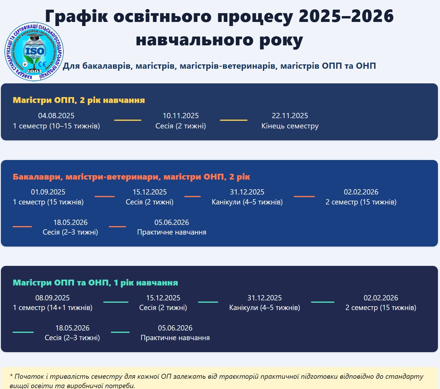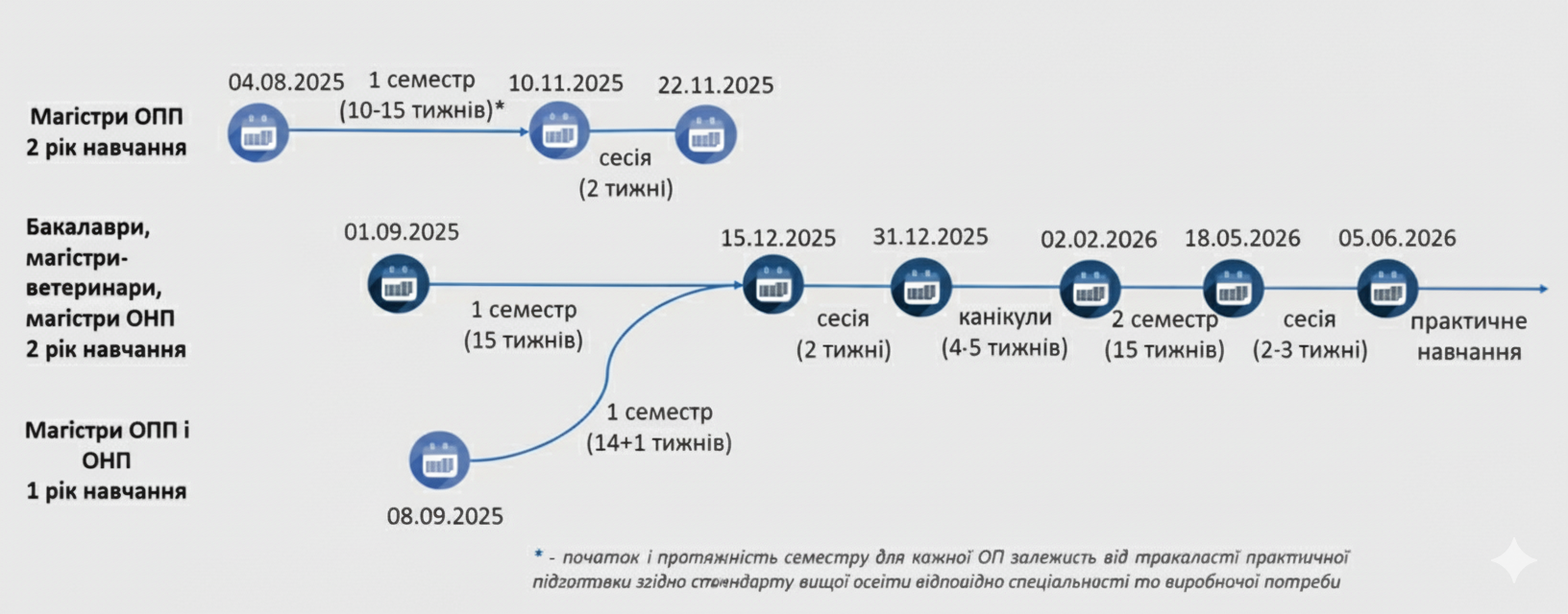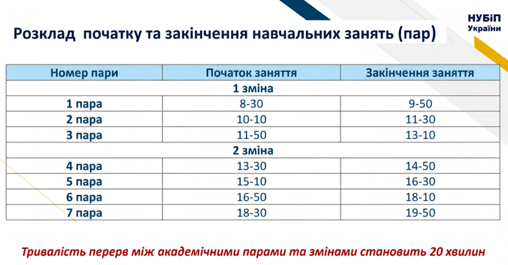 Окрім того, залишається без змін розклад початку та закінчення пар у першому семестрі 2025/2026 навчального року.