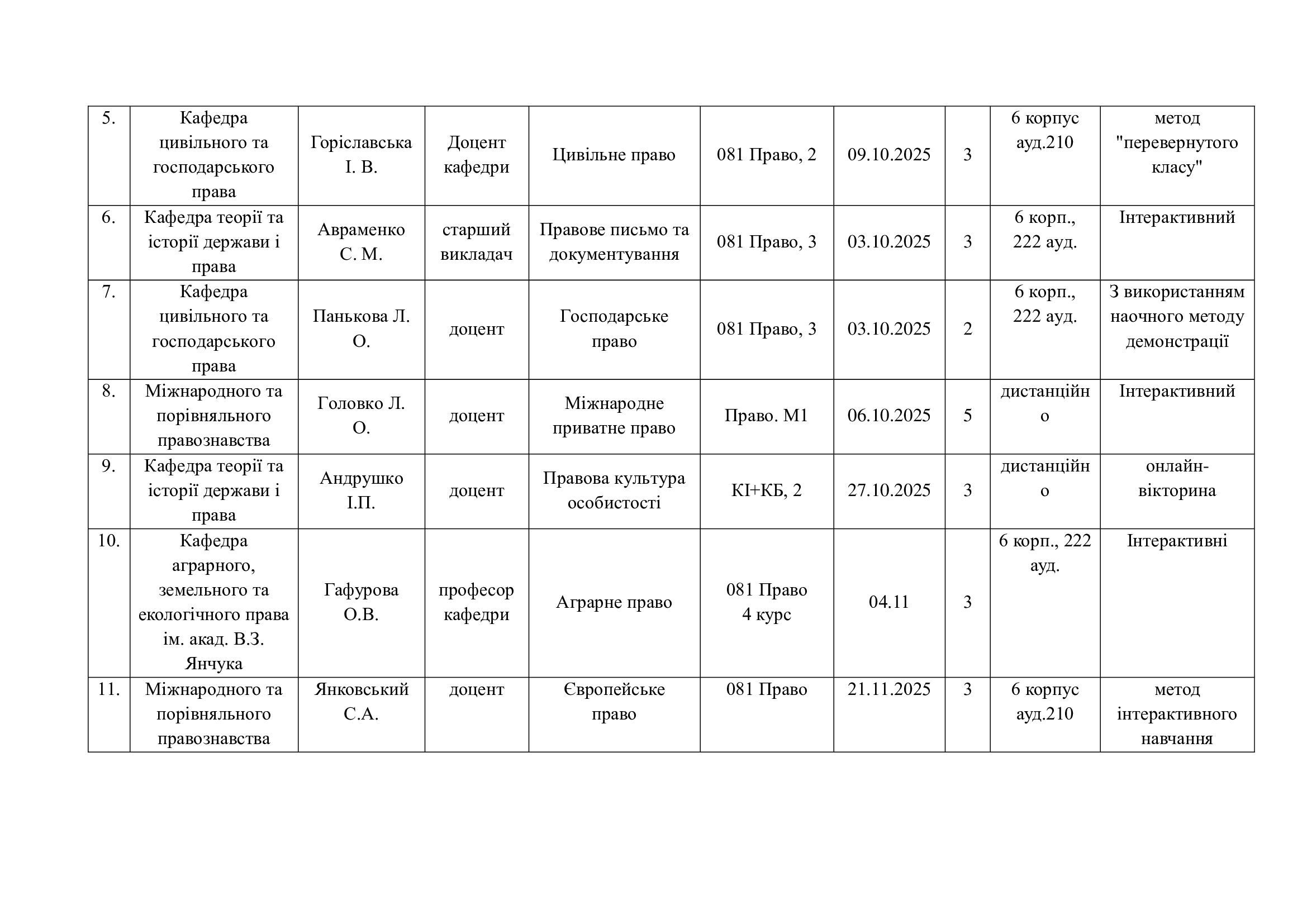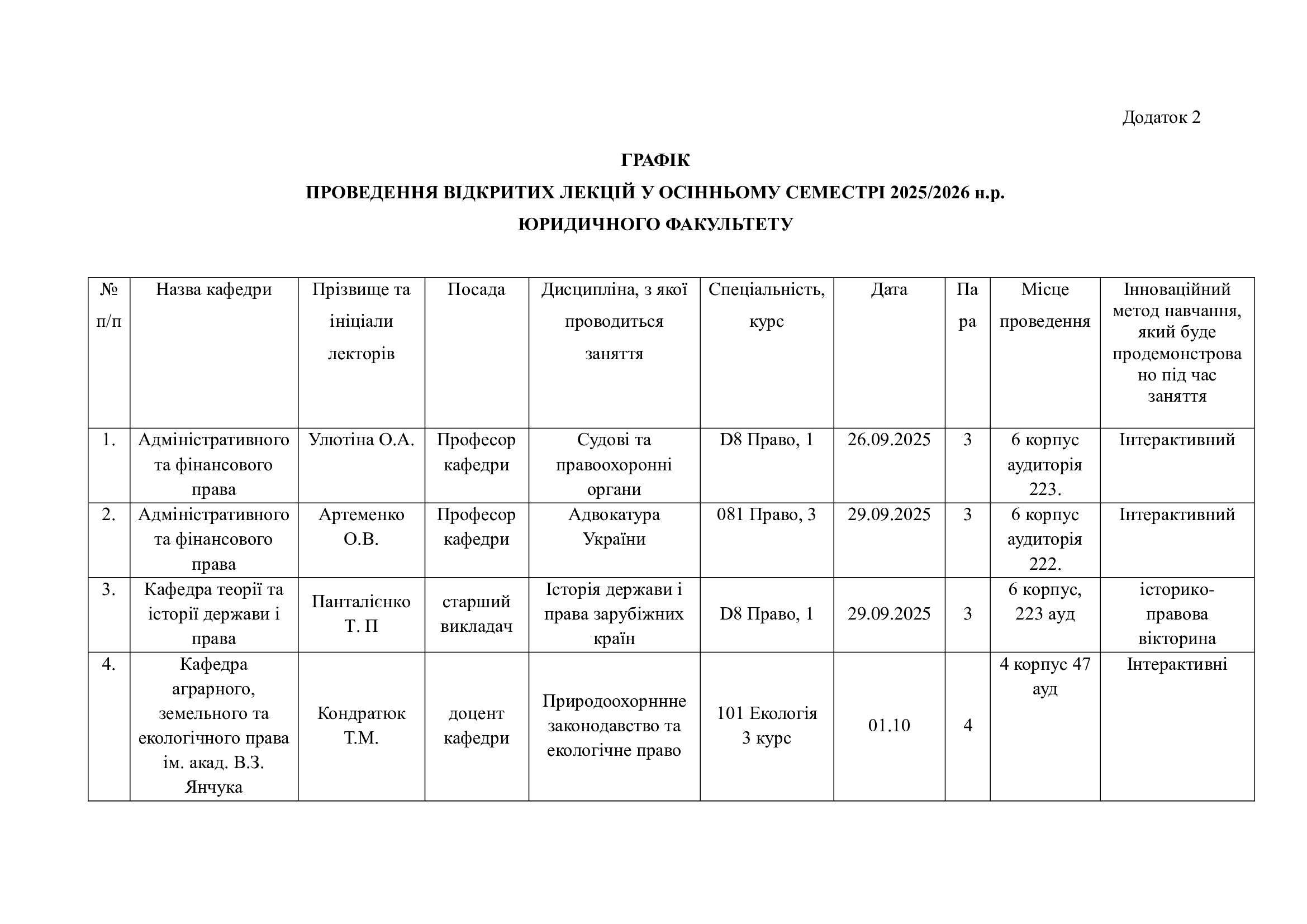 Графік проведення відкритих лекцій у осінньому семестрі 2025/2026 н.р