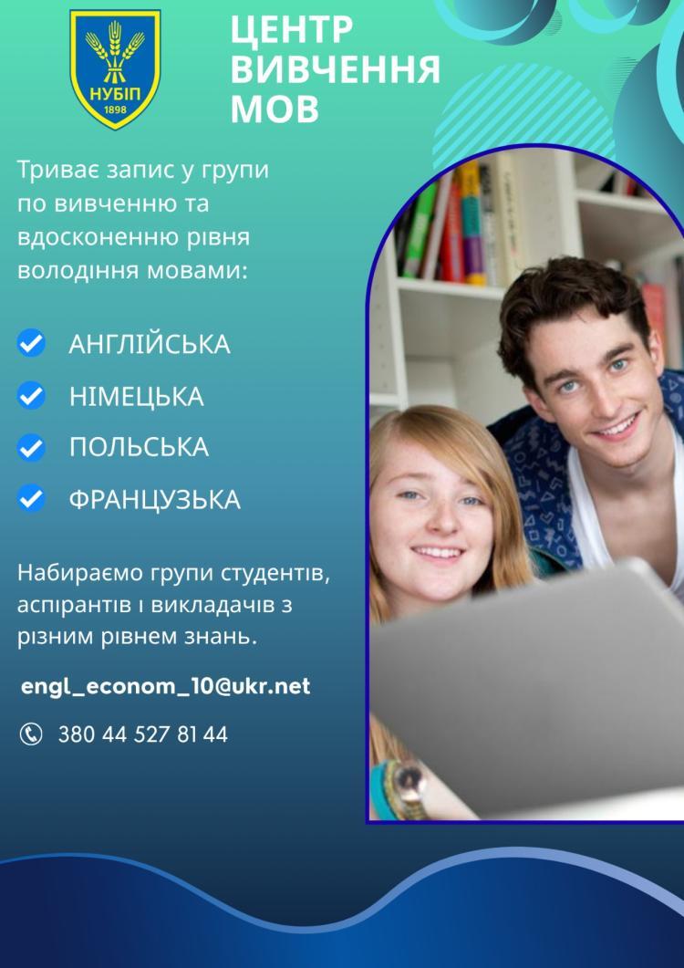 Центр вивчення іноземних мов гуманітарно-педагогічного факультету запрошує на курси вивчення іноземних мов та підготовки до складання ЄВІ 1 жовтня 2025 – 1 липня 2026 року 08:30 - 17:30
