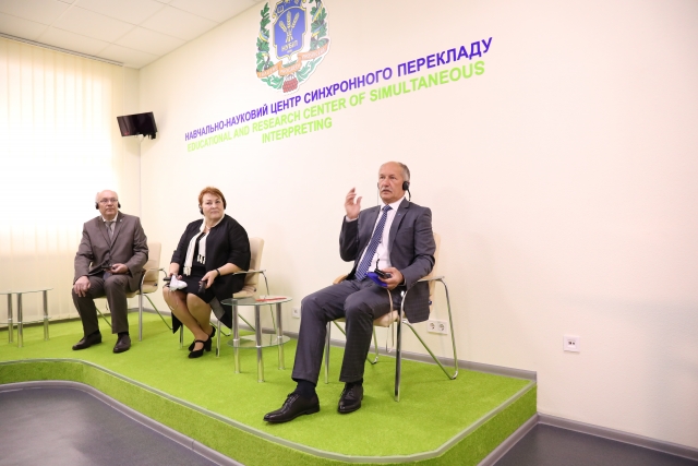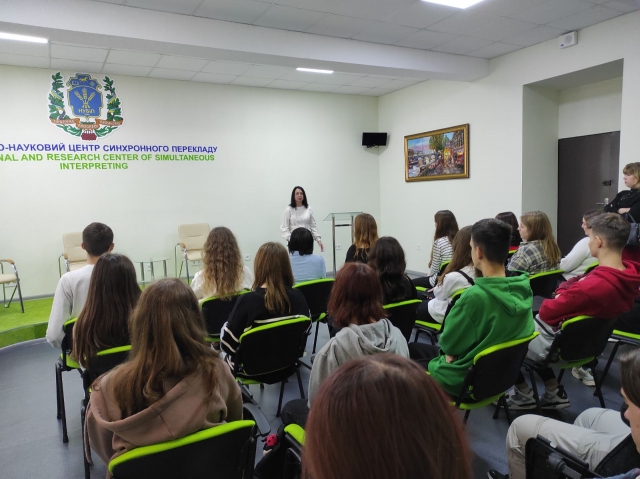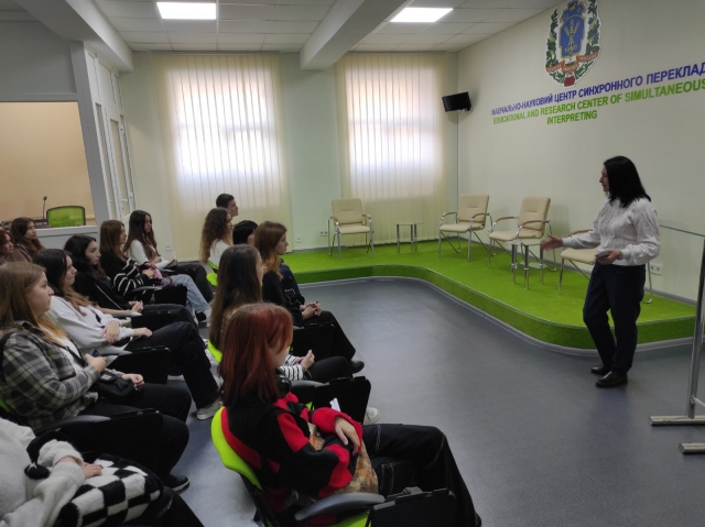 До структури кафедри належить навчальна лабораторія «Лабораторія синхронного перекладу».