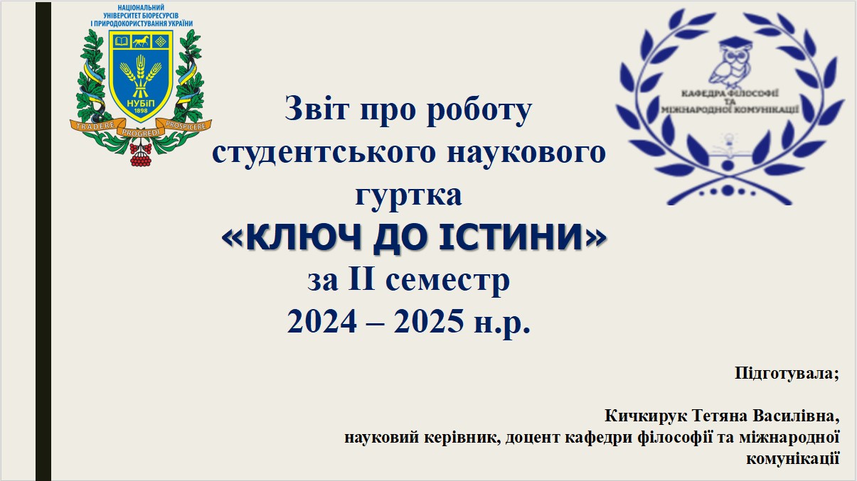 Звіт-презентація по роботі наукового гуртка "Ключ до істини" за 2023-2024 н.р.