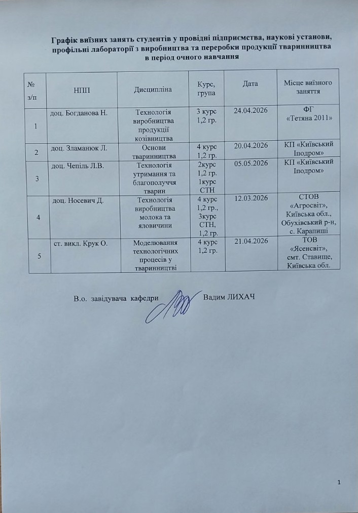 Для студентів ОС “Бакалавр” за спеціальністю “Технологія виробництва і переробки продукції тваринництва” викладаються дисципліни: