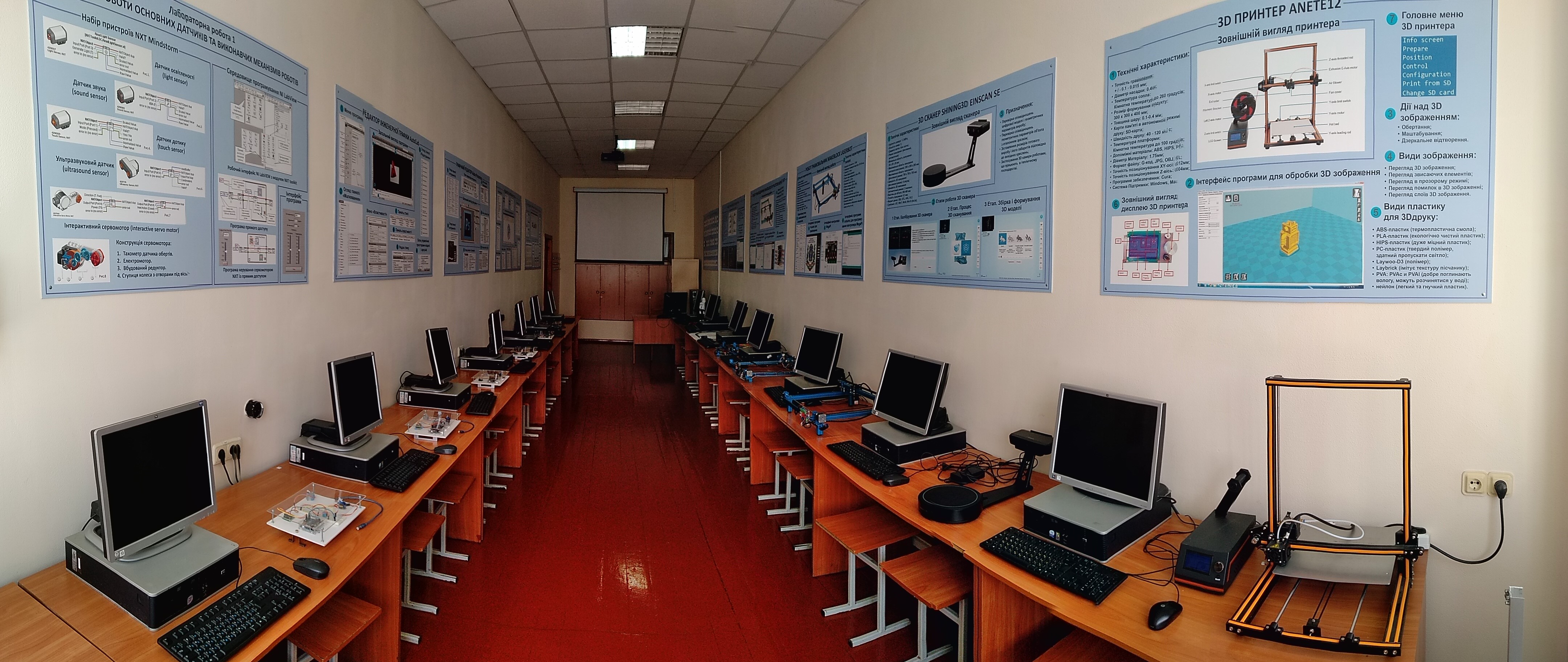 Навчальна лабораторія комп’ютено-інтегрованих технологій та навчальна лабораторія робототехнічних комплексів та систем (кімн. 332а корп. 11); (відео 1, відео 2) Паспорт