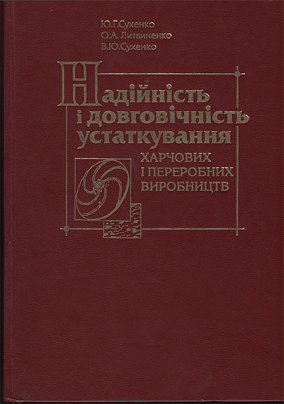 - Сухенко Ю.Г., Паламарчук І.П., Сивак Р.І., Жеплінська М.М. Надійність обладнання галузі: переробні та харчові виробництва: [Підручник] / За ред. проф. Ю.Г. Сухенка. – К.: Фірма «ІНКОС», 2018. – 484 с.