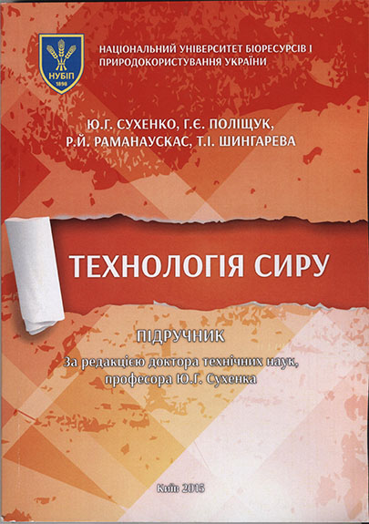 - Сухенко Ю.Г., Поліщук Г.Є., Раманаускас Р.Й., Шингарева Т.І. Технологія сиру: [Підручник] / За ред. проф. Ю.Г. Сухенка. – К.: ЦП «КОМПРИНТ», 2015. – 412 с.
