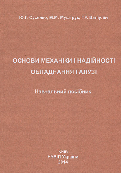 - Сухенко Ю.Г., Муштрук М.М., Сухенко В.Ю. Основи механіки і надійності обладнання галузі. Практикум: [Навчальний посібник]. – К.: ЦП «КОМПРІНТ», 2015. – 273 с.