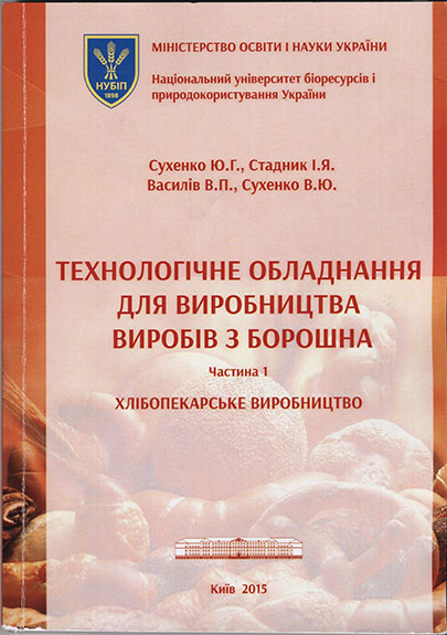 - Сухенко Ю.Г., Стадник І.Я., Василів В.П. та ін. Технологічне обладнання для виробництва виробів з борошна. Частина 1. Хлібопекарське виробництво: [Навч. посібник] / За ред. проф. Ю.Г. Сухенка. – К.: НУБіП України, 2015. – 388 с.
