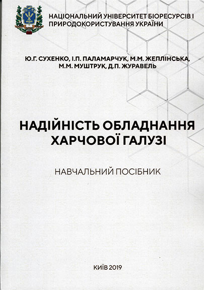 - Сухенко Ю.Г., Паламарчук І.П., Жеплінська М.М., Муштрук М.М., Журавель Д.П. Надійність обладнання харчової галузі. Навчальний посібник. – К.: ЦП «Компринт», 2019. – 370 с.