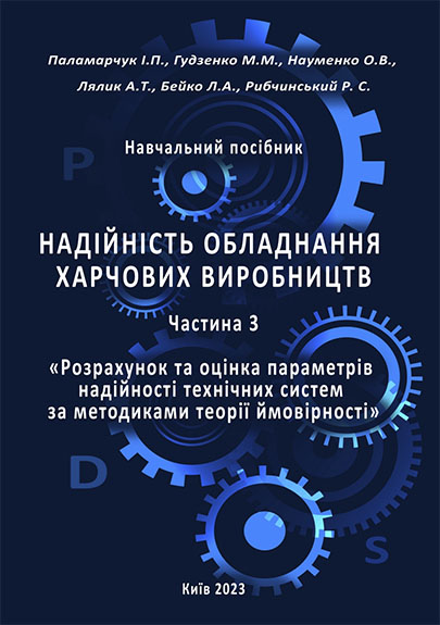 - Надійність обладнання харчових виробництв. Частина 3 "Розрахунок та оцінка параметрів надійності технічних систем за методиками теорії ймовірності" [Навчальний посібник] / За ред. проф. І.П. Паламарчука. – К.: «Основа», 2023. – 534 с.