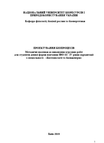 Проектування біопроцесів / Дрозд П.Ю., Бабицький А.І. К.: НУБіП України, 2019 р. - 19 с.