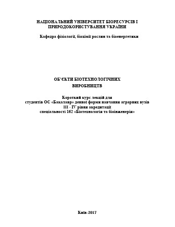 Об'єкти біотехнологічних виробицтв / Бабицький А.І., Дрозд П.Ю. К.: НУБіП України, 2017 р. - 40 с.