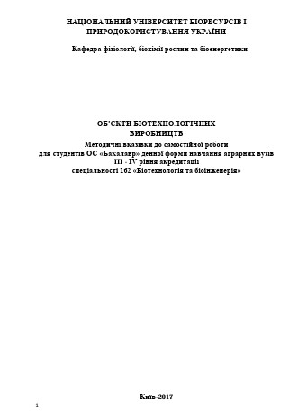 Об'єкти біотехнологічних виробицтв / Бабицький А.І., Дрозд П.Ю. К.: НУБіП України, 2017 р. - 35 с.