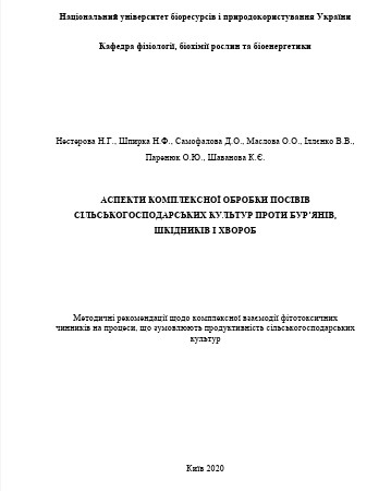 Аспекти комплексної обробки посівів сільськогосподірських культур проти бур'янів, шкідників і хвороб / Нестерова Н.Г., Шпирка Н.Ф., Самофалова Д.О., Маслова О.О., Іллєнко В.В., Паренюк О.Ю., Шаванова К.Є. К. НУБіП України, 2019 р. - 33 с.