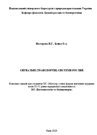 Сигнальні (транспортні) системи рослин / Нестерова О.А., Бойко О.А. К.: НУБіП України, 2020 р. - 64 с.