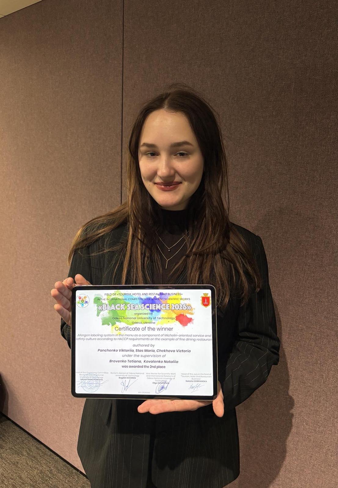Вікторія ПАНЧЕНКО серед переможців Міжнародного конкурсу студентських наукових робіт «Black Sea Science 2026»