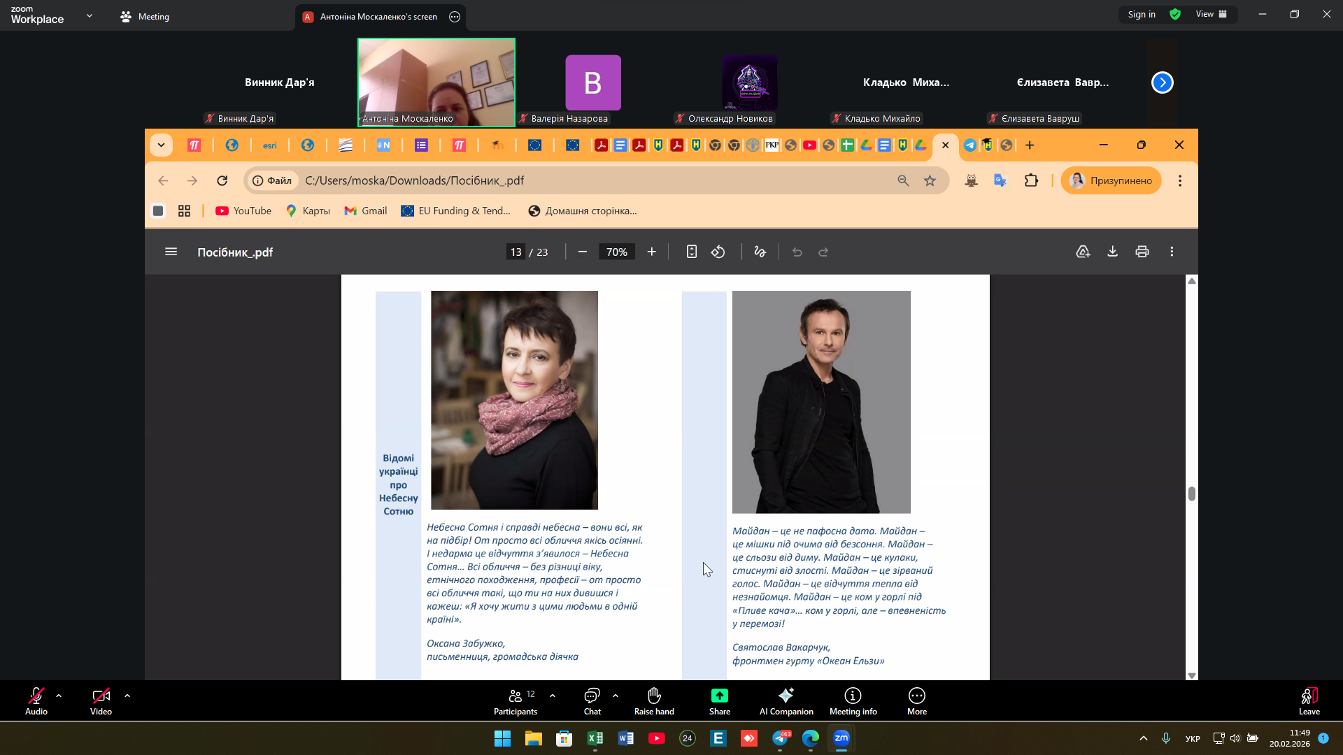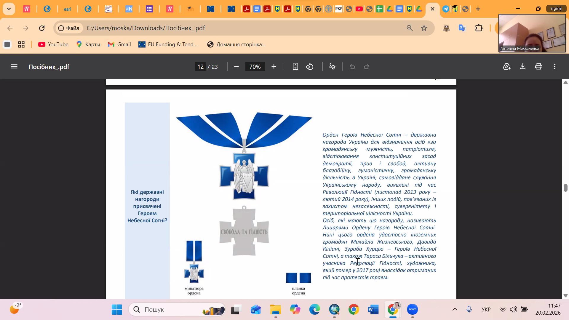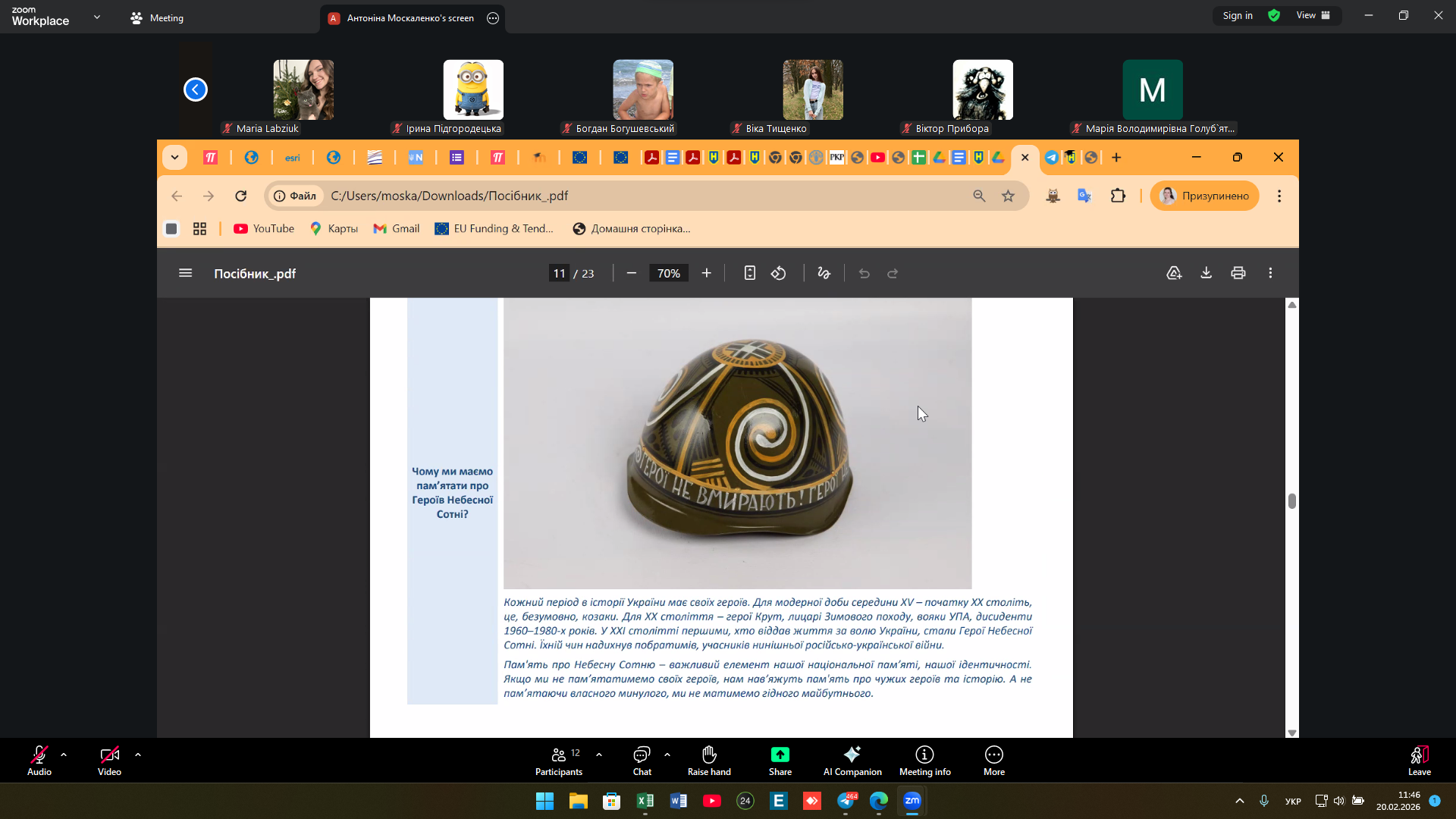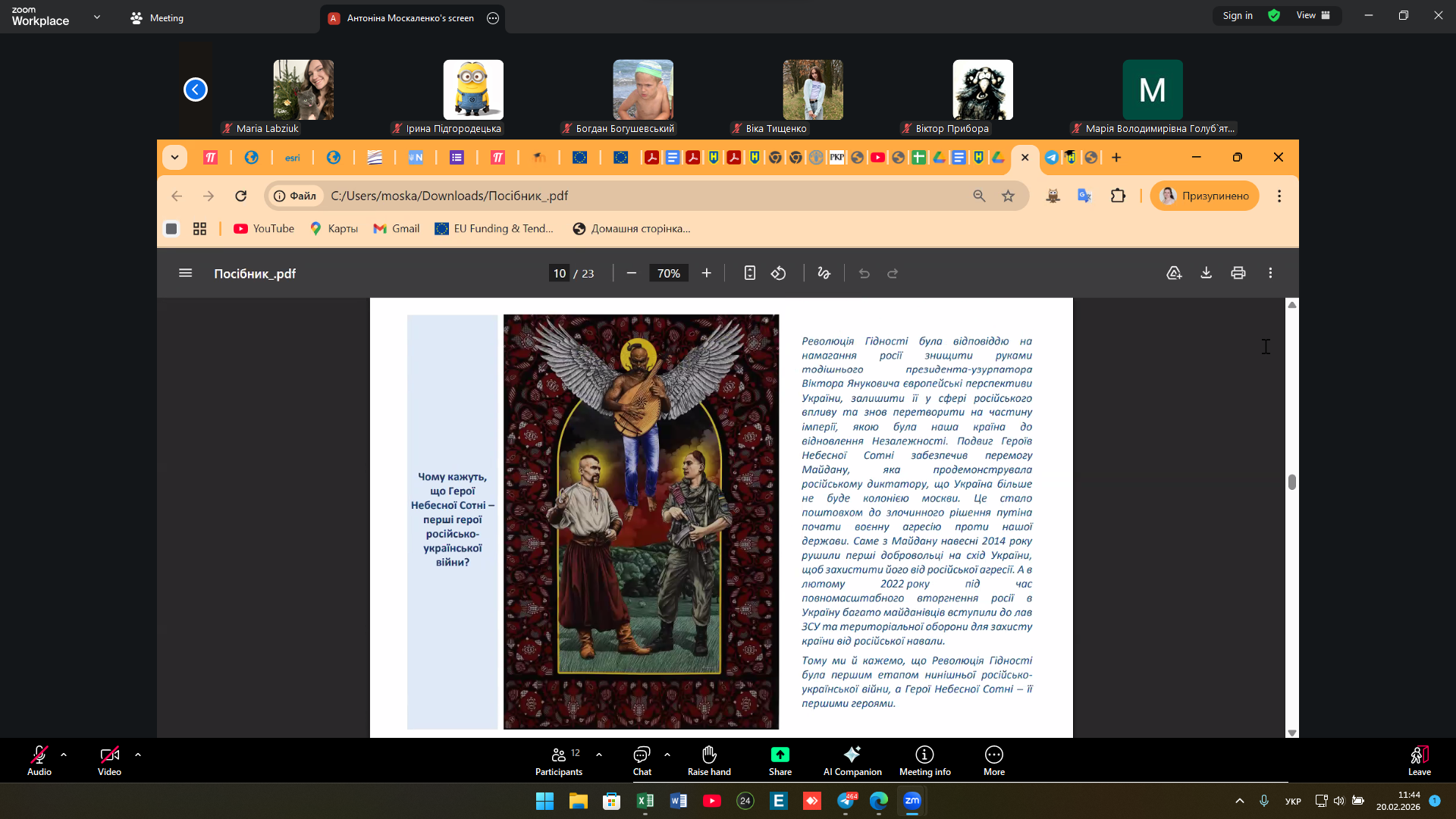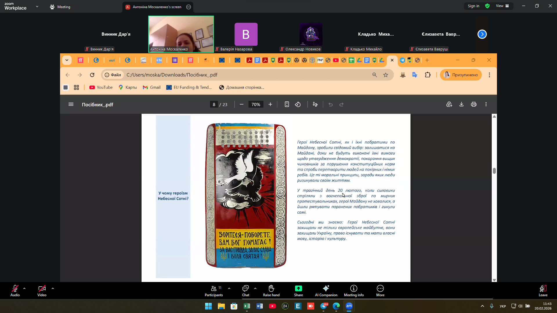 20 лютого: пам’ять Героїв Небесної Сотні у центрі студентської зустрічі (група 2-ЗеВ-1)