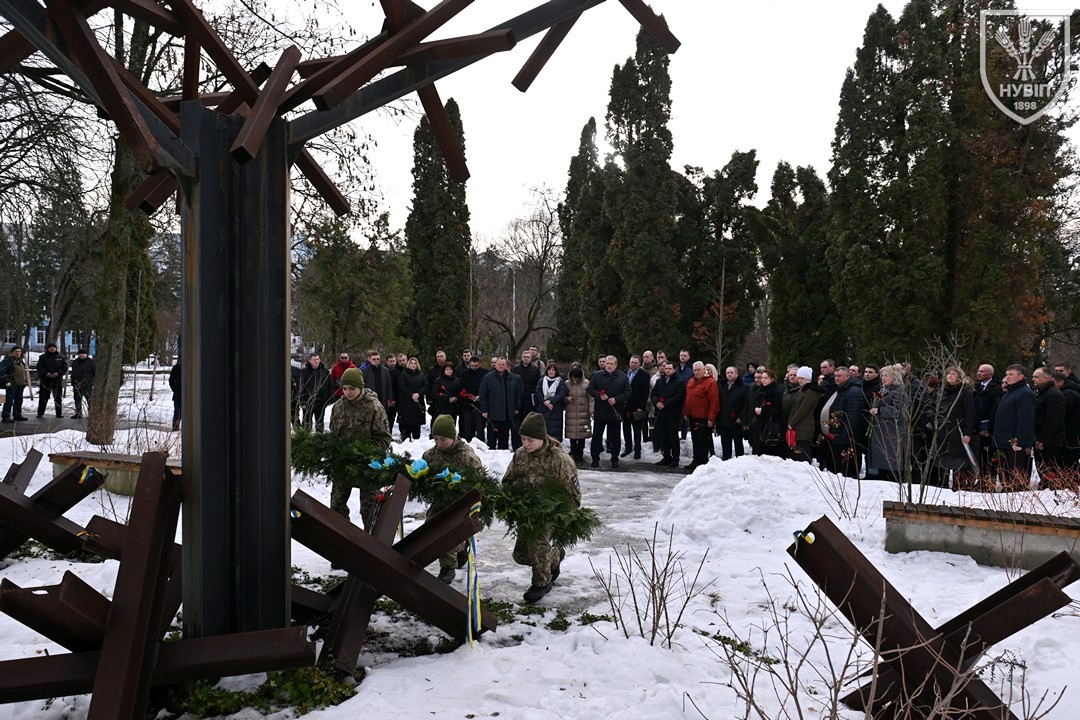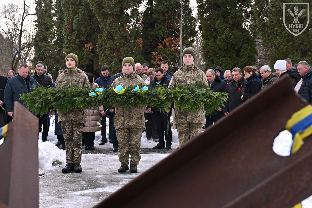 З ранку студенти, викладачі та співробітники факультету взяли участь у спільному з адміністрацією університету покладанні квітів до меморіалу загиблим героям на території НУБіП. Урочиста церемонія пройшла в атмосфері глибокої поваги та єдності: учасники хвилиною мовчання вшанували пам’ять полеглих, поклали квіти та запалили свічки пам’яті.