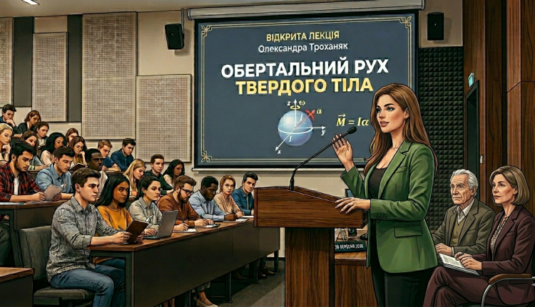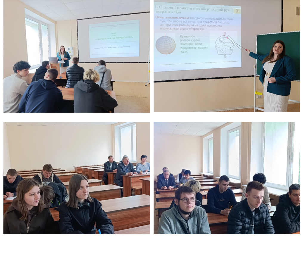 30 березня 2026 року на другій парі відбулася відкрита лекція доцента кафедри механіки, кандидата технічних наук, доцента ТРОХАНЯК Олександри Миколаївни на тему: «Обертальний рух твердого тіла» для студентів першого курсу, які навчаються за освітньо-професійною програмою G3 «Електрична інженерія» ОС «Бакалавр» за освітньою компонентою «Теоретична механіка».