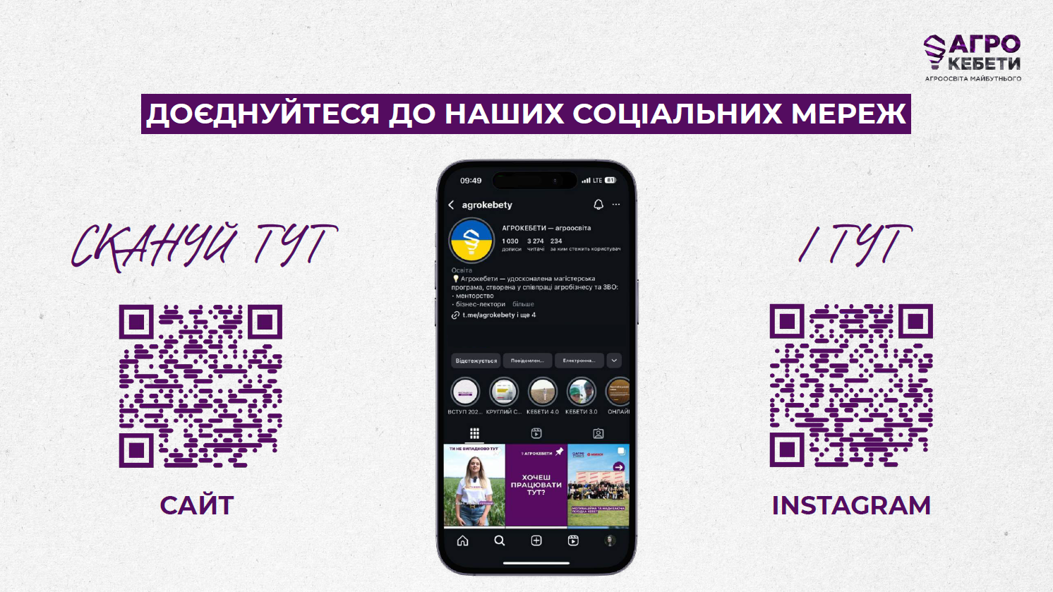 За актуальними новинами про проєкт "Агрокебети" можна слідкувати зі сторінки сайту, а також інстаграм-сторінки проєкту. Тож до зустрічі в Приймальній комісіїї факультету аграрного менеджменту НУБіП України.
