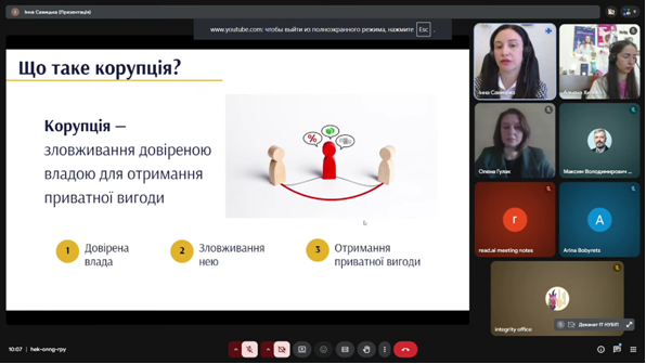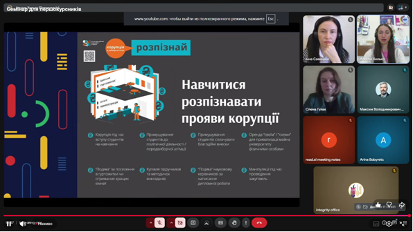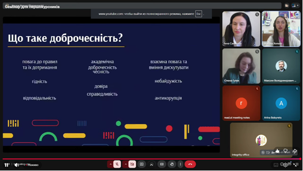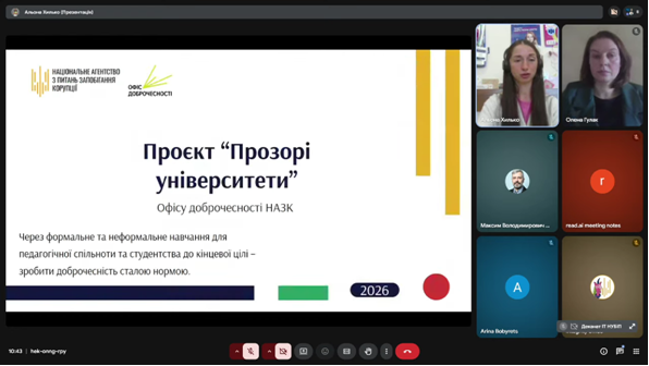 Під час зустрічі перед студентами та викладачами виступили представниці Офісу доброчесності Національного агентства з питань запобігання корупції, які через зрозумілі приклади та життєві паралелі розкрили теми антикорупції та академічної доброчесності.
